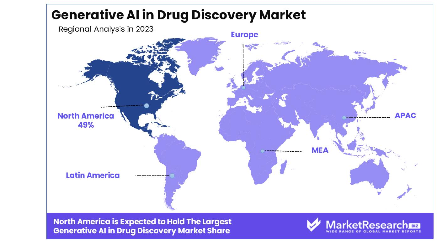 •Regional Dominance: North America remains the largest market, representing 49% of the global share in Generative AI-driven drug discovery.