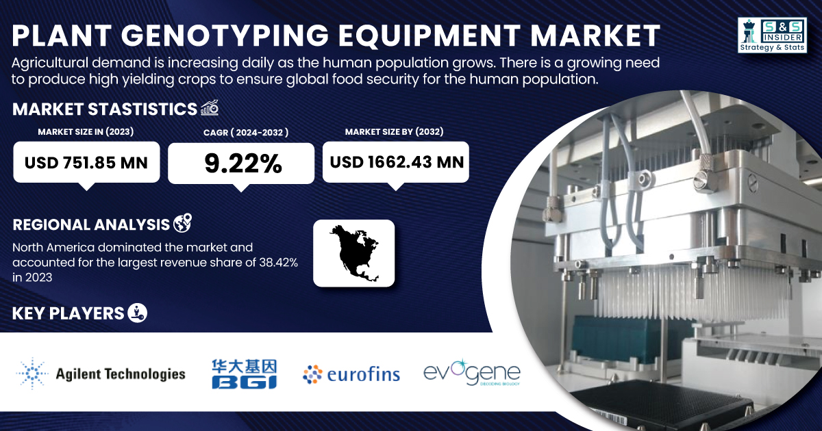 AUSTIN, TX, UNITED STATES, February 12, 2025 /EINPresswire.com/ -- The SNS Insider report indicates that the Plant Genotyping Equipment Market was valued at USD 751.85 Million in 2023, and it is expected to reach USD 1662.43 Million by 2032, registering a CAGR of 9.22% from 2024 to 2032. Technological advancements in genotyping techniques and the rising importance of genomics in agriculture are propelling the demand for plant genotyping equipment, enabling more precise and efficient plant breeding and genetic research.Get a Sample Report of Plant Genotyping Equipment Market @ https://www.snsinsider.com/sample-request/4385