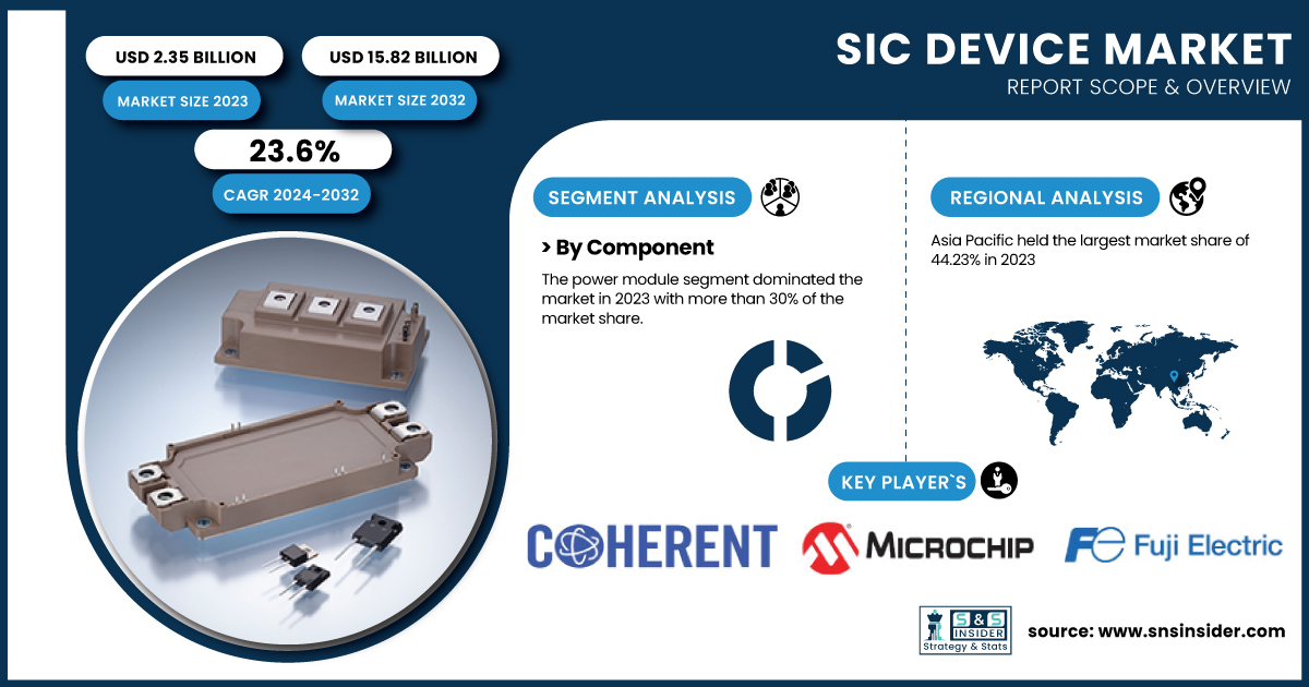 AUSTIN, TX, UNITED STATES, February 12, 2025 /EINPresswire.com/ -- Market Size & Industry InsightsAs Per the SNS Insider,“The SiC Device Market size was valued at USD 2.35 billion in 2023 and is expected to reach USD 15.82 billion by 2032 and grow at a CAGR of 23.6% over the forecast period 2024-2032.”