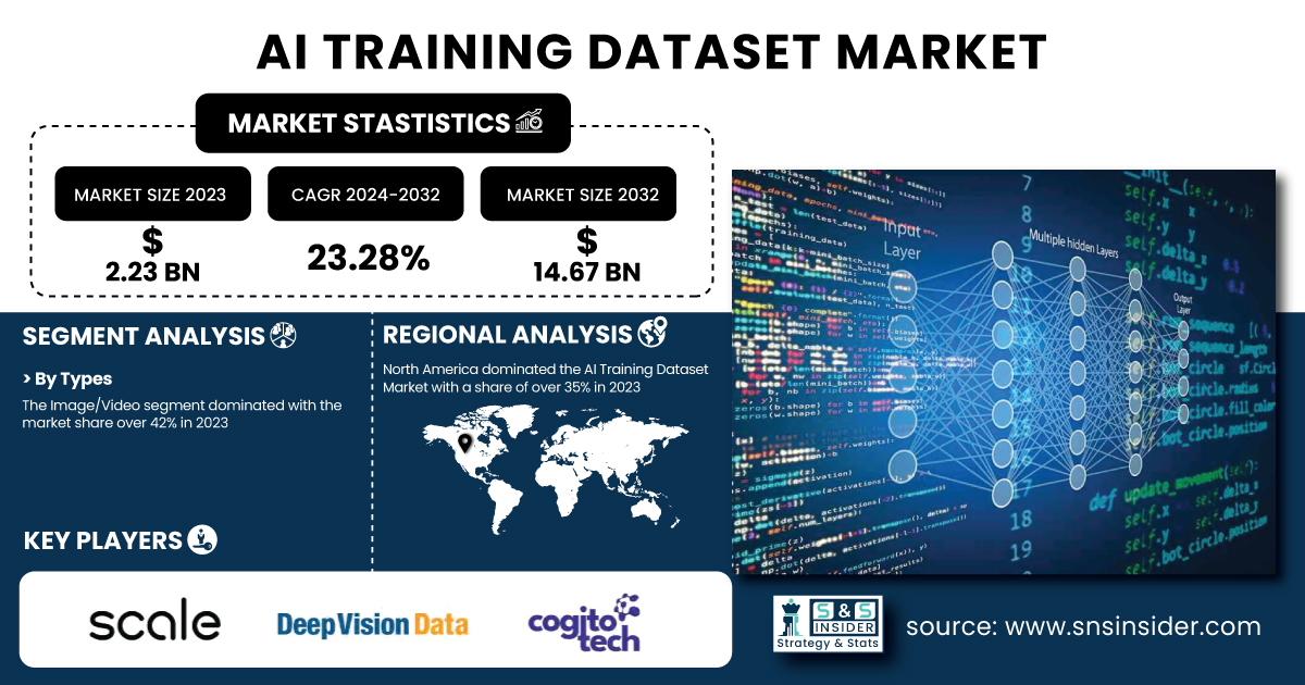 AUSTIN, TX, UNITED STATES, February 12, 2025 /EINPresswire.com/ -- According to SNS Insider, the AI Training Dataset Market was valued at USD 2.23 billion in 2023 and is projected to reach USD 14.67 billion by 2032, growing at a CAGR of 23.28% during the forecast period of 2024-2032. The growing reliance on AI-driven applications across industries is driving the demand for diverse and high-quality training datasets, fueling market expansion.Get Sample Copy of Report: https://www.snsinsider.com/sample-request/3166