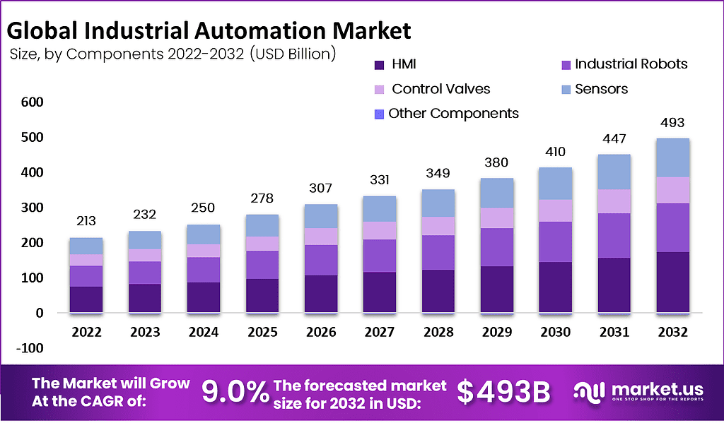 Industrial Automation Systems Market USD 493 billion by 2032 at a 9.0% CAGR, Region at Accounting for 34.5%