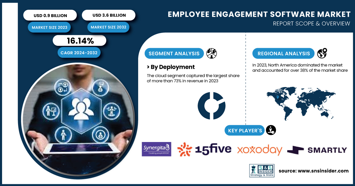 AUSTIN, TX, UNITED STATES, February 13, 2025 /EINPresswire.com/ -- The Employee Engagement Software Market was valued at USD 0.9 billion in 2023 and is expected to reach USD 3.6 billion by 2032, growing at a CAGR of 16.14% from 2024 to 2032. This report provides a summary of the state of feature analysis and user demographics, integration capabilities by software, and their influence on decision-making. Discussion around the rise in popularity of cloud based AI driven solutions that improve communication, enhance collaboration, and increase employee retention. Broad demand for scalable and flexible platforms across industries and workforces propels add-ons market.Get Sample Copy of Report: https://www.snsinsider.com/sample-request/2747