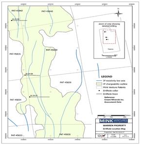- With the completion of this drill program, Mink fulfilled the work commitment ($300,000) of the option to earn a 100% interest in the Warren Patents. Half of Mink’s expenditures were offset by non-dilutive OJEP grants, making this a very cost-effective property acquisition.