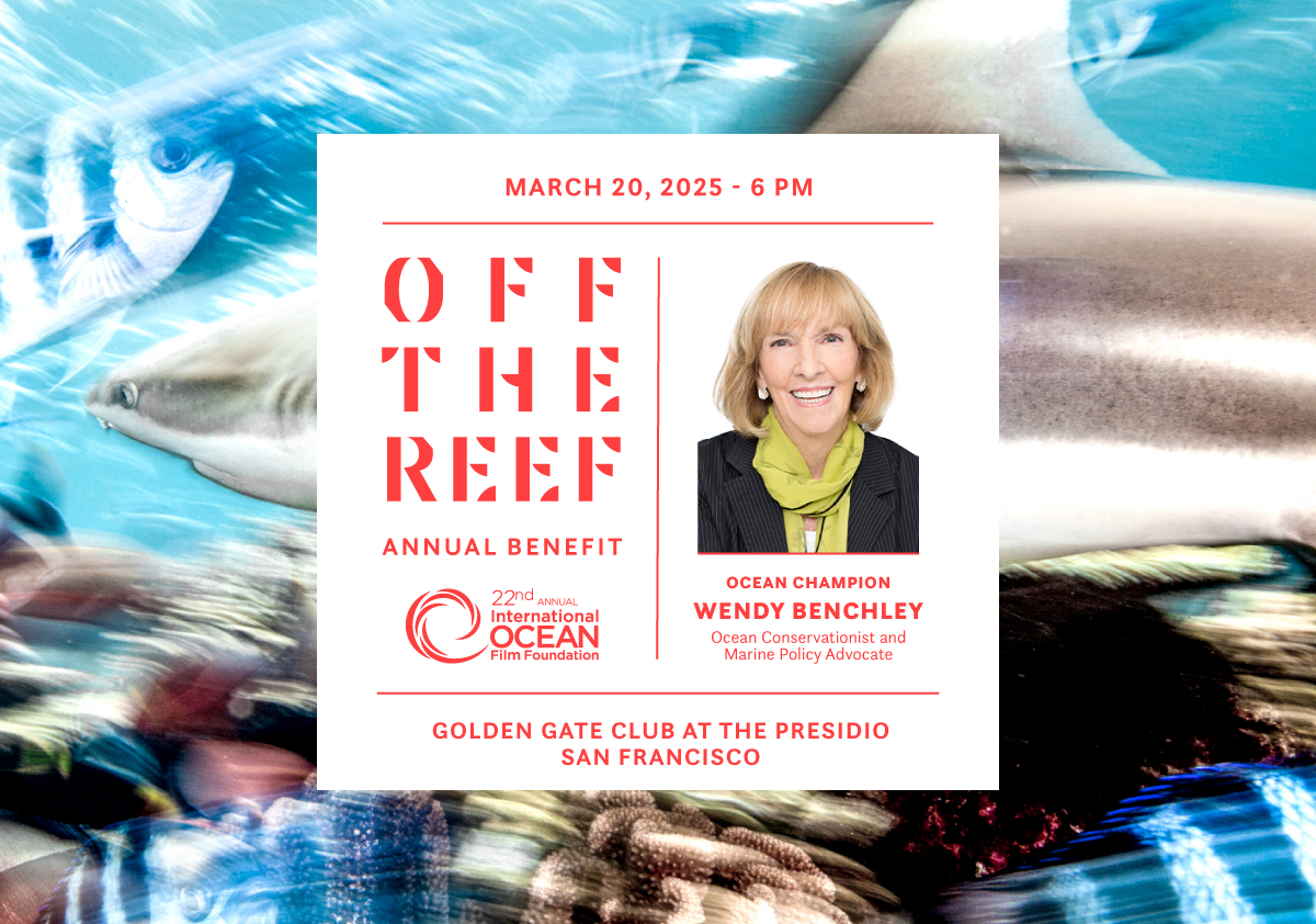SF International Ocean Film Festival opens ticket sales for March 20 Off the Reef fundraiser at Golden Gate Club. Wendy Benchley named Ocean Champion.