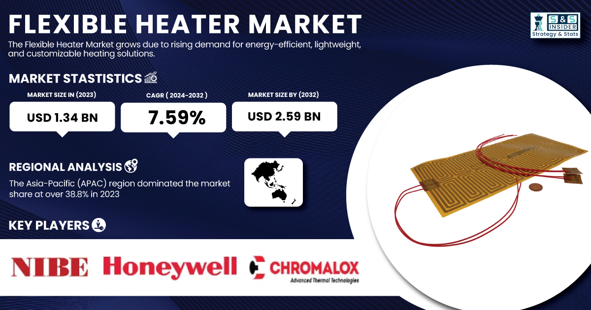 AUSTIN, TX, UNITED STATES, February 14, 2025 /EINPresswire.com/ -- The SNS Insider report indicates that the Flexible Heater Market Size was valued at USD 1.34 Billion in 2023 and is now anticipated to grow at USD 2.59 Billion by 2032, displaying a compound annual growth rate of 7.59% during the forecast period 2024-2032. Increasing need for energy-efficient heating solutions from several sectors is propelling growth in the flexible heater market. They find application in those systems where heating systems are required to be reliable as well as efficient, for instance in electronics, automotive and medical devices.Get a Sample Report of Flexible Heater Market @ https://www.snsinsider.com/sample-request/4322