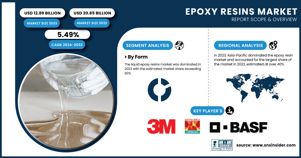AUSTIN, TX, UNITED STATES, February 14, 2025 /EINPresswire.com/ -- The Epoxy Resins Market Size was valued at USD 12.89 Billion in 2023 and is expected to reach USD 20.85 Billion by 2032, growing at a CAGR of 5.49% over the forecast period of 2024-2032.The Epoxy Resins Market is significantly growing with the increased usage of paints, coatings, adhesives, and construction. The major manufacturers are investing in sustainable formulations to meet environmental standards. The European Chemical Industry Council, (CEFIC), reports the rising demand for sustainable resins in construction. The region that would exhibit the largest growth is going to be in Asia-Pacific through industrialization and the demand generated for automotive and aerospace sectors where, for instance, Huntsman Corporation is taking care to promote low-emission epoxy resins aligned with consumers' preferences.