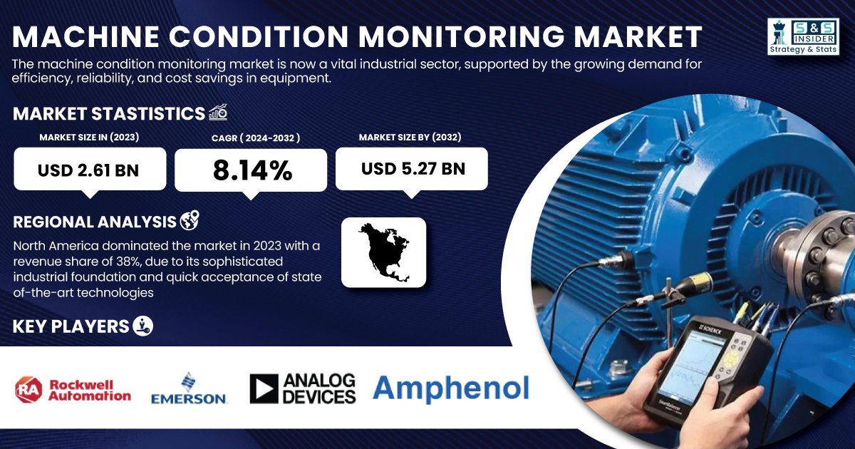 AUSTIN, TX, UNITED STATES, February 14, 2025 /EINPresswire.com/ -- Market Size & Industry InsightsAs Per the SNS Insider,“The Machine Condition Monitoring Market size was valued at USD 2.61 Billion in 2023and expected to reach USD 5.27 Billion by 2032, growing at a CAGR of 8.14% during 2024-2032.”