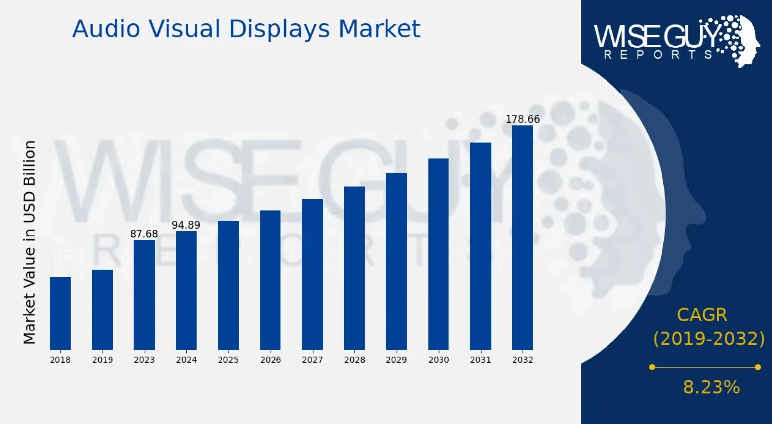 NEW YORK, NY, UNITED STATES, February 14, 2025 /EINPresswire.com/ -- Audio Visual Displays Market Size was estimated at 87.68 (USD Billion) in 2023. The Audio Visual Displays Market Industry is expected to grow from 94.89(USD Billion) in 2024 to 178.6 (USD Billion) by 2032. The Audio Visual Displays Market CAGR (growth rate) is expected to be around 8.23% during the forecast period (2024 - 2032).Audio Visual Displays Market is poised for substantial growth, driven by advancements in display technology, increasing demand across various industries, and the evolving consumer electronics sector. A newly released market research report provides a comprehensive analysis of the industry, forecasting significant expansion from 2023 to 2032. The study segments the market based on product type, resolution, application, panel size, mounting type, and region, offering valuable insights into the future trajectory of audio-visual display solutions.