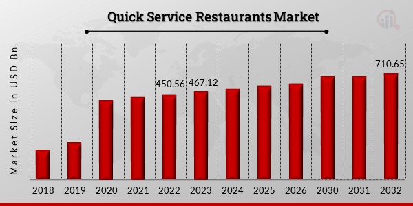 NEW YORK, NY, UNITED STATES, February 16, 2025 /EINPresswire.com/ -- ๐๐ฎ๐ข๐๐ค ๐๐๐ซ๐ฏ๐ข๐๐ ๐๐๐ฌ๐ญ๐๐ฎ๐ซ๐๐ง๐ญ๐ฌ ๐๐ง๐๐ฎ๐ฌ๐ญ๐ซ๐ฒ ๐๐ฏ๐๐ซ๐ฏ๐ข๐๐ฐIn 2023, Quick Service Restaurants Market Size was estimated to be worth USD 450.56 billion. The sector for quick service restaurants is expected to expand at a compound annual growth rate (CAGR) of 4.02% from 2024 to 2032, from USD 488.98 billion to USD 710.65 billion. People's hectic schedules, shifting consumption patterns, and growing e-commerce channel penetration are the main factors driving the market's expansion, which is likely to boost demand for quick service restaurants (QSRs).