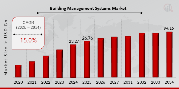 HI, UNITED STATES, February 16, 2025 /EINPresswire.com/ -- The Building Management System (BMS) Market was estimated at USD 23.27 billion in 2024 and is projected to grow from USD 26.76 billion in 2025 to USD 94.15 billion by 2034, exhibiting a compound annual growth rate (CAGR) of 15.20% during the forecast period (2025-2034). The market expansion is driven by an increasing focus on eco-friendly and energy-efficient buildings, the growing adoption of automated security systems, and the rising popularity of IoT-based Building Automation Systems (BASs).Key Drivers of Market Growth