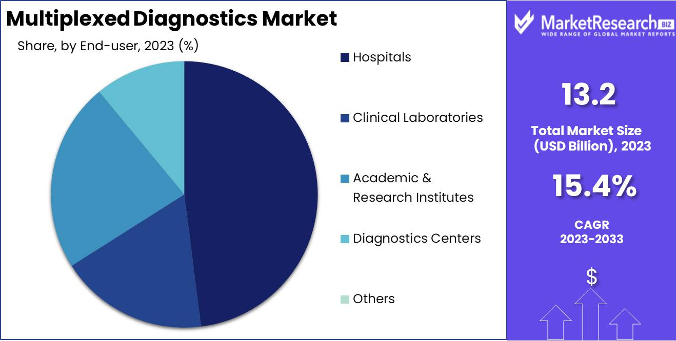 •By End-user Analysis: Hospitals dominated the By End-user segment in 2023, holding over 48% of the market. As primary healthcare providers, hospitals invest in advanced diagnostic infrastructure, ensuring efficient and accurate multiplexed testing. Their role in handling a high patient volume further strengthens their position, as they conduct extensive diagnostic testing for both inpatients and outpatients.