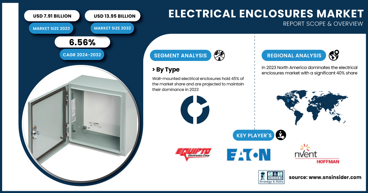 AUSTIN, TX, UNITED STATES, February 17, 2025 /EINPresswire.com/ -- Market Size & Industry InsightsAccording to the SNS Insider Report,“The Electrical Enclosure market was valued at USD 7.91 billion in 2023 and is expected to grow to USD 13.95 billion by 2032, at a CAGR of 6.56% over the forecast period of 2024-2032.”