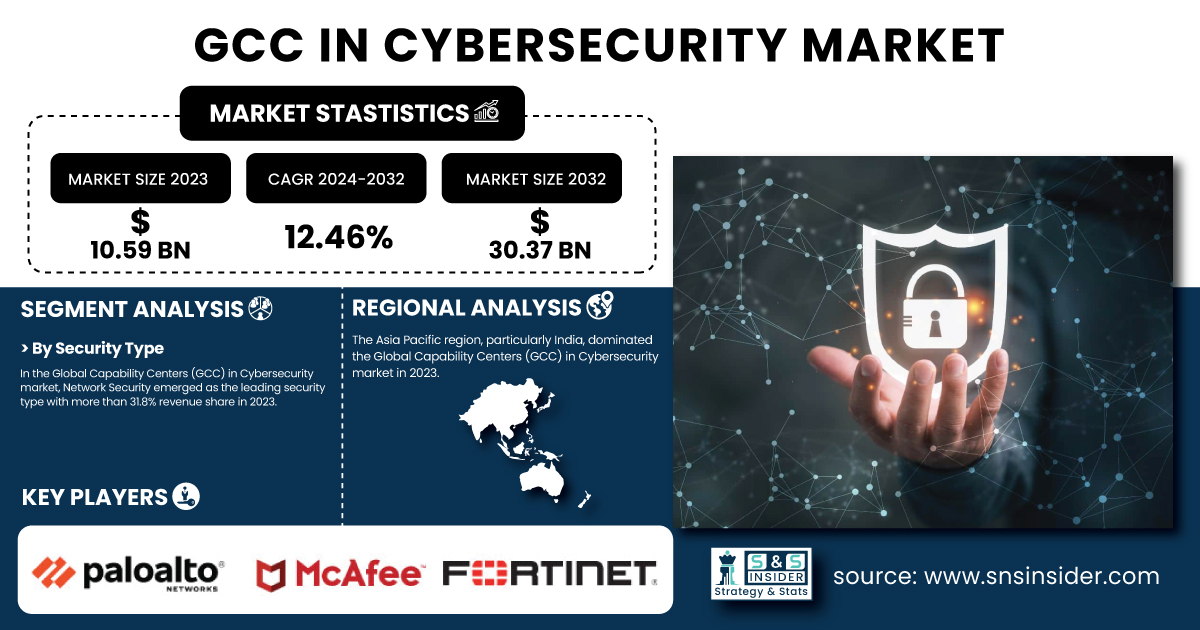 AUSTIN, TX, UNITED STATES, February 17, 2025 /EINPresswire.com/ -- According to the SNS Insider report, the GCC in Cybersecurity Market was valued at USD 10.59 billion in 2023 and is projected to reach USD 30.37 billion by 2032, exhibiting a compound annual growth rate of 12.46% from 2024 to 2032. The escalating frequency and sophistication of cyber-attacks are compelling organizations to invest heavily in cybersecurity-focused Global Capability Centers to safeguard critical data and infrastructure.Get Sample Copy of Report: https://www.snsinsider.com/sample-request/4718