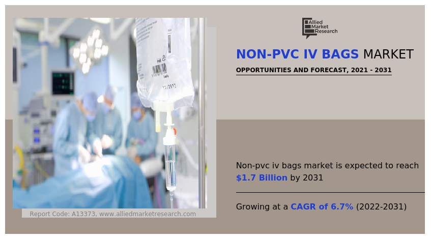WILMINGTON, DE, UNITED STATES, February 18, 2025 /EINPresswire.com/ -- According to Allied Market Research, the Non-PVC IV Bags Market is projected to reach $1,684.5 million by 2031, growing at a CAGR of 6.7% from 2022 to 2031. This report explores the market’s growth drivers, segmentation, and key players contributing to the Non-PVC IV Bags Market's growth. The healthcare industry is rapidly adopting safer alternatives to traditional medical equipment, and one such transition is the shift from polyvinyl chloride (PVC) IV bags to non-PVC IV bags. These alternatives are growing in popularity due to their safety, environmental benefits, and cost-effectiveness. As patients and healthcare providers become more conscious of the risks associated with PVC, the Non-PVC IV Bags Market has witnessed significant expansion.Get Sample PDF Copy: https://www.alliedmarketresearch.com/request-sample/A13373