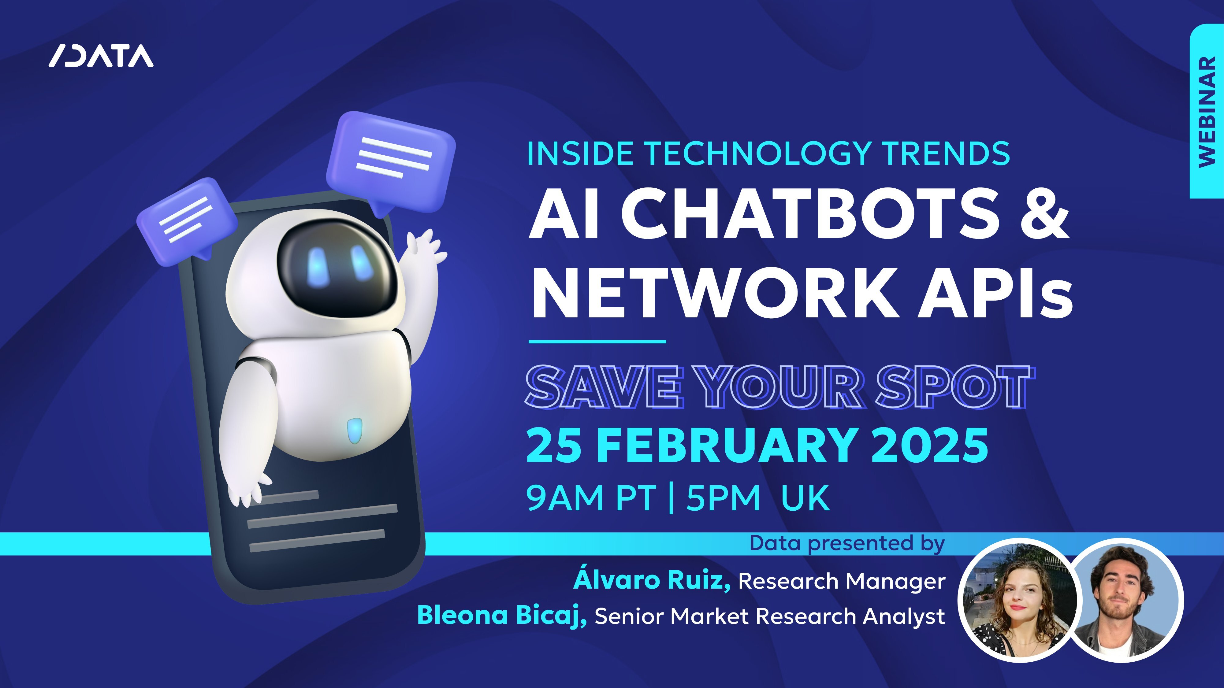 MANCHESTER , UNITED KINGDOM, February 19, 2025 /EINPresswire.com/ -- Live webinar on AI chatbots & Network APIs | Feb 25, 2025SlashData is hosting a live webinar to share insights on the adoption of AI chatbots and why Network APIs are becoming the industry’s new oil. Backed by real-world data, this session will deliver key insights for businesses, developers, and decision-makers looking to stay ahead in this continuously evolving tech landscape.