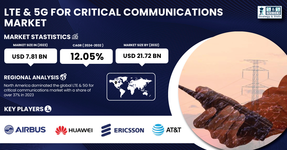 AUSTIN, TX, UNITED STATES, February 19, 2025 /EINPresswire.com/ -- Market Size & Industry InsightsAs Per the SNS Insider,“The LTE & 5G for Critical Communications Market size was USD 7.81 Billion in 2023 & expected to reach USD 21.72 By 2032 and grow at a CAGR of 12.05% over the forecast period 2024-2032.”