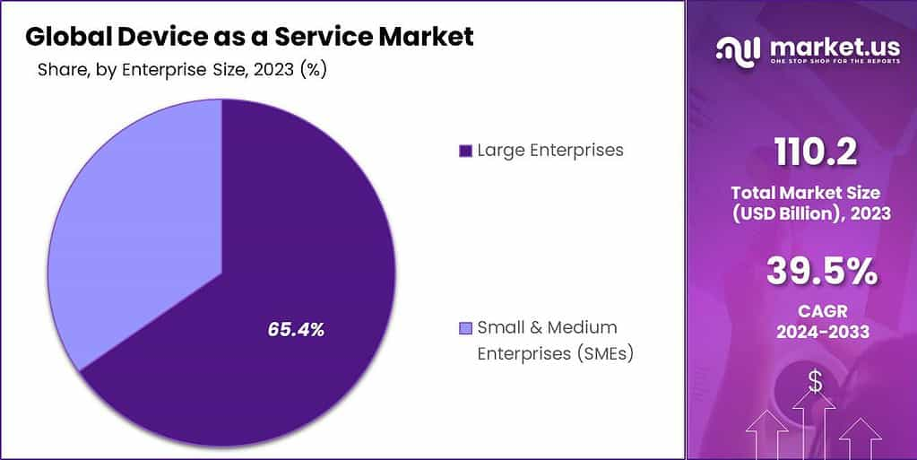 In 2023, the IT & Telecommunications segment dominated the Device as a Service (DaaS) market, capturing more than a 21.5% share. This leadership is largely due to the sector's inherent need for constant technological upgrades to maintain operational efficiency and competitiveness. The DaaS model aligns perfectly with these requirements by offering flexible and scalable access to the latest hardware, software, and technical support through a subscription-based model. The ability to avoid downtime and technological obsolescence, coupled with enhanced security and compliance features of DaaS, ensures uninterrupted and competitive service delivery in this industry.