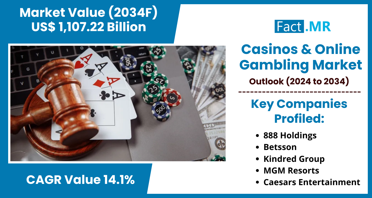 ROCKVILLE, MD, UNITED STATES, February 20, 2025 /EINPresswire.com/ -- According to the newly released report by Fact.MR, a market research and competitive intelligence provider, the global casinos & online gambling market is evaluated to reach US$ 296.31 billion in 2024. The market is further projected to advance at a CAGR of 14.1% between 2024 and 2034.Due to shifting entertainment tastes and technology advancements, the casino and internet gambling industries are expanding at a rate never seen before in history. Conventional casinos are changing into integrated resorts that include several entertainment alternatives, including live performances and excellent restaurants.