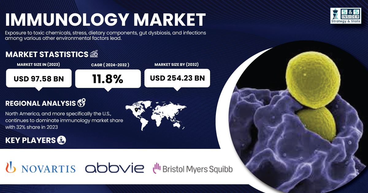 AUSTIN, TX, UNITED STATES, February 20, 2025 /EINPresswire.com/ -- According to Research by SNS Insider, The Global Immunology Market, valued at USD 97.58 billion in 2023, is set for a dramatic surge to USD 254.23 billion by 2032, registering a robust CAGR of 11.8%.Key market drivers include the rising prevalence of autoimmune diseases such as rheumatoid arthritis, multiple sclerosis, and type 1 diabetes, coupled with the rapid development of biologics and targeted therapies. However, high costs associated with biologic treatments and stringent regulatory requirements remain significant challenges. Meanwhile, the burgeoning field of immunotherapy and an increased focus on precision medicine present substantial growth opportunities.