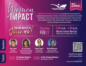 WOODLAND HILLS, CA, UNITED STATES, February 20, 2025 /EINPresswire.com/ -- The Greater San Fernando Valley Chamber is proud to present the Second Annual Women of Impact Luncheon, taking place on Thursday, February 27, 2025, at 11:00 AM at the Warner Center Marriott.— NANCY HOFFMAN VANYEK