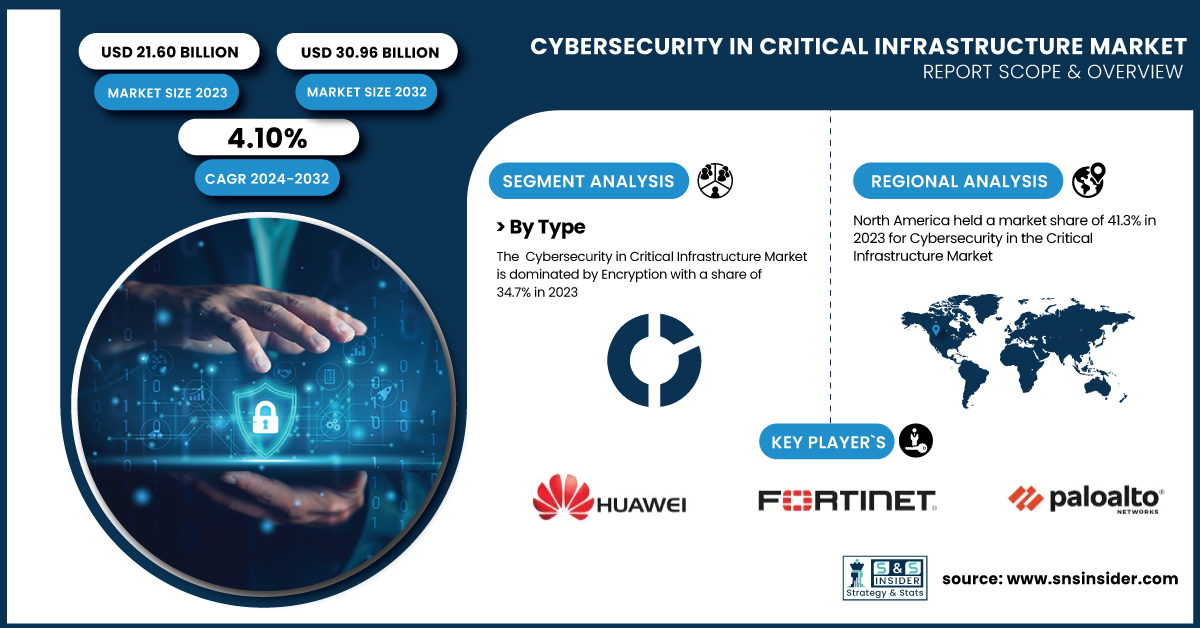 AUSTIN, TX, UNITED STATES, February 21, 2025 /EINPresswire.com/ -- The Cybersecurity in Critical Infrastructure Market was valued at USD 21.60 billion in 2023 and is expected to reach USD 30.96 billion by 2032, growing at a CAGR of 4.10% over the forecast period 2024-2032. This analysis includes cyberattack frequency and impact in 2023, incident response time, the cost of cybersecurity breaches, and security maturity levels. Increasing cyber threats, evolving regulatory frameworks, and the need for robust security strategies are shaping market growth, driving investments in advanced threat detection and incident response solutions.Get Sample Copy of Report: https://www.snsinsider.com/sample-request/5490