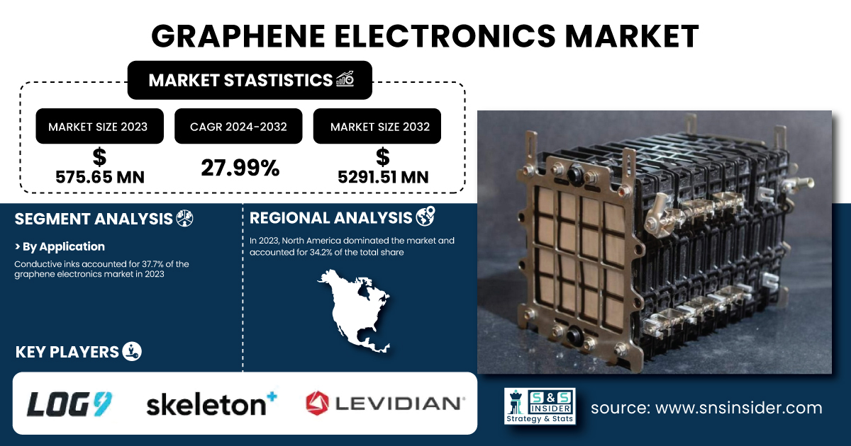 AUSTIN, TX, UNITED STATES, February 21, 2025 /EINPresswire.com/ -- Market Size & Industry InsightsAs Per the SNS Insider,“The Graphene Electronics Market was valued at USD 575.65 million in 2023 and is expected to grow to USD 5291.51 million by 2032, at a CAGR of 27.99% over the forecast period of 2024-2032.”