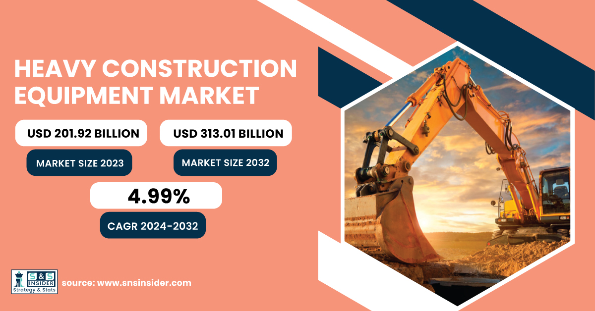 AUSTIN, TX, UNITED STATES, February 24, 2025 /EINPresswire.com/ -- The heavy construction equipment market was valued at USD 201.92 billion in 2023 and is projected to reach USD 313.01 billion by 2032, growing at a CAGR of 4.99% from 2024 to 2032. Increased construction activities in residential, commercial, and industrial establishments along with government measures to enhance transportation, energy, and public infrastructure is driving the growth of the global construction adhesive market. Additionally, the widespread adoption of automation and telematics in heavy machinery and rising demand for fuel-efficient and electric construction equipment are also expected to boost the growth of the market.Get a Sample Report of Heavy Construction Equipment Market @ https://www.snsinsider.com/sample-request/5589