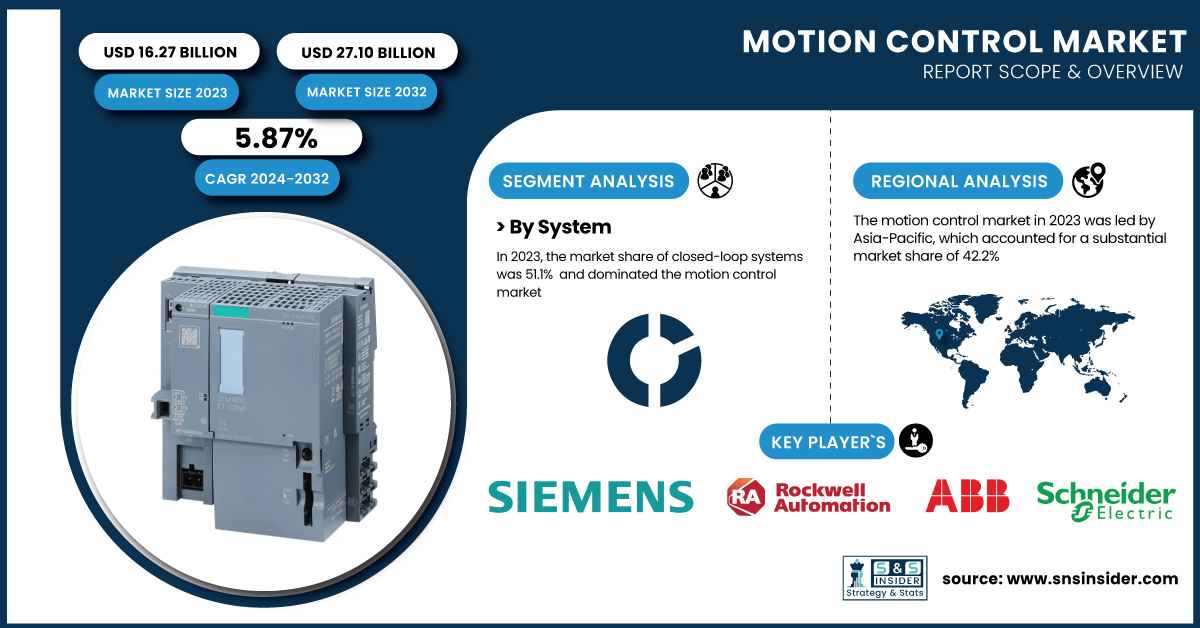 AUSTIN, TX, UNITED STATES, February 24, 2025 /EINPresswire.com/ -- Market Size & Industry InsightsAs Per the SNS Insider,“The Motion Control market was valued at USD 16.27 billion in 2023 and is expected to grow to USD 27.10 billion by 2032, at a CAGR of 5.87% over the forecast period of 2024-2032.”