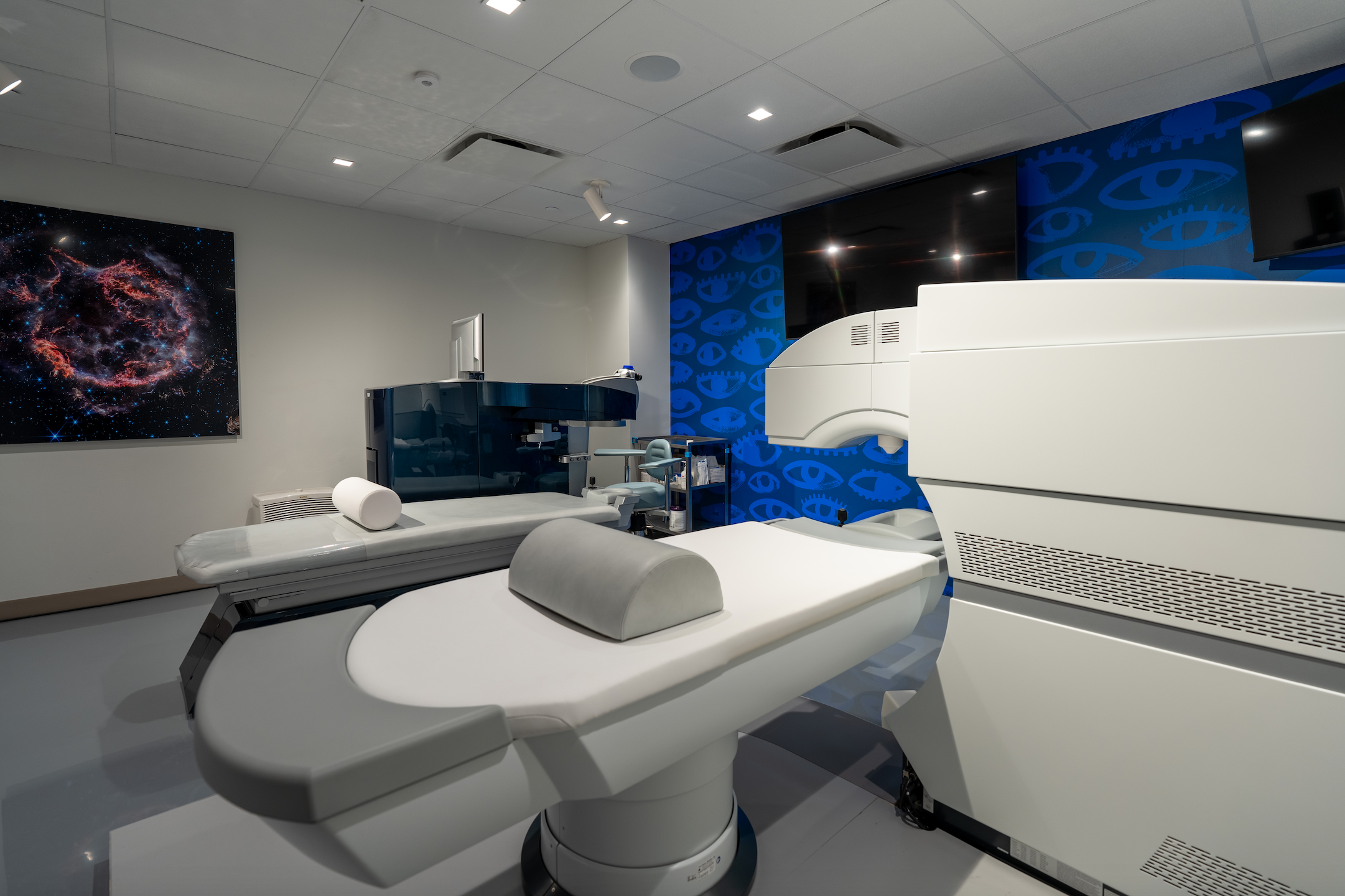 "Patients may forget what they hear, but they never forget what they see," shares Dr. James Kelly. "That’s why this space had to be a true reflection of my soul and life’s passion—where the digital world, the solar system, the intricate pathways of the eye, and pure artistry converge. This modern hub embodies that vision. The eye is the most artistic and advanced structure in the human body, and I wanted that to be evident throughout the space. My hope is that this next-generation canvas delivers a ‘wow’ factor, creating an experience that excites patients and keeps them eager to return."