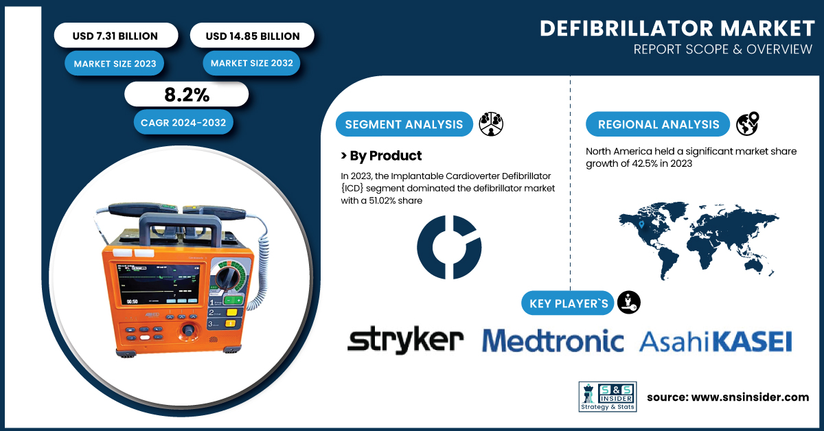 AUSTIN, TX, UNITED STATES, February 25, 2025 /EINPresswire.com/ -- According to Research by SNS Insider, The Defibrillator Market was valued at USD 7.31 billion in 2023 and is expected to reach USD 14.85 billion by 2032, growing at a steady rate of 8.2% from 2024 to 2032. This growth is fueled by increasing cases of cardiovascular diseases, advancements in defibrillator technology, and the rising demand for life-saving cardiac devices. The growing aging population, coupled with lifestyle-related factors such as obesity and hypertension, has significantly increased the incidence of heart-related conditions, further driving market expansion.Get a Free Sample Report@ https://www.snsinsider.com/sample-request/3654