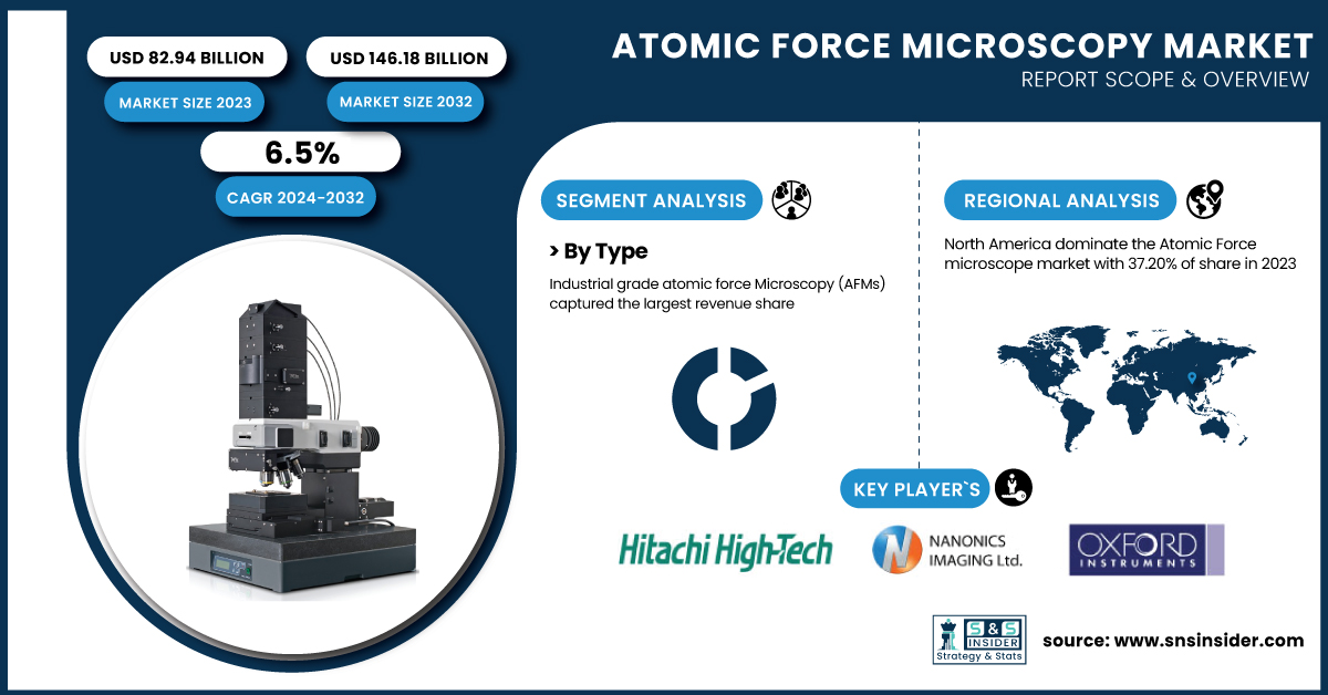 AUSTIN, TX, UNITED STATES, February 25, 2025 /EINPresswire.com/ -- Market Size & Industry InsightsAs Per the SNS Insider,“The Atomic Force Microscope Market size is expected to be valued at USD 82.94 Billion in 2023. It is estimated to reach USD 146.18 Billion by 2032 with a growing CAGR of 6.5% over the forecast period 2024-2032.”
