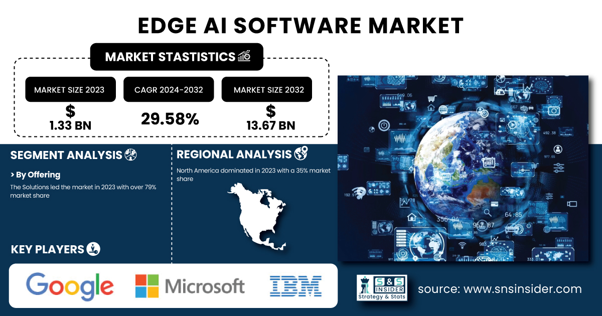 AUSTIN, TX, UNITED STATES, February 26, 2025 /EINPresswire.com/ -- The Edge AI Software Market was valued at USD 1.33 Billion in 2023 and is projected to reach USD 13.67 Billion by 2032, growing at a compound annual growth rate (CAGR) of 29.58% from 2024 to 2032.Get Sample Copy of Report: https://www.snsinsider.com/sample-request/2153