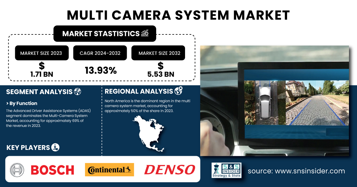 AUSTIN, TX, UNITED STATES, February 26, 2025 /EINPresswire.com/ -- Market Size & Industry InsightsAs Per the SNS Insider,“The Multi Camera System market was valued at USD 1.71 billion in 2023 and is expected to grow to USD 5.53 billion by 2032, at a CAGR of 13.93% over the forecast period of 2024-2032.”