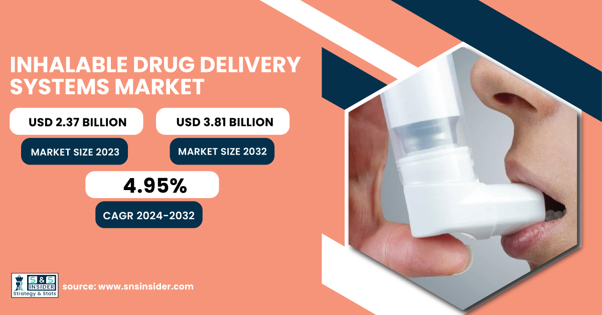 AUSTIN, TX, UNITED STATES, February 26, 2025 /EINPresswire.com/ -- According to Research by SNS Insider, The Inhalable Drug Delivery Systems Market was estimated at USD 2.37 billion in 2023 and is expected to reach USD 3.81 billion by 2032, at a CAGR of 4.95% during the forecast period of 2024-2032.The Inhalable Drug Delivery Systems market is growing substantially with increasing respiratory diseases such as asthma and COPD, as well as technological advancements in aerosol and dry powder formulations. Market growth is also fueled by the increasing use of inhalable biologics and personalized medicine. Moreover, technological advances in smart inhalers and drug-device integration also improve patient compliance. As there is increased demand for non-invasive drug delivery, the market is expected to register robust technological developments and mass adoption.
