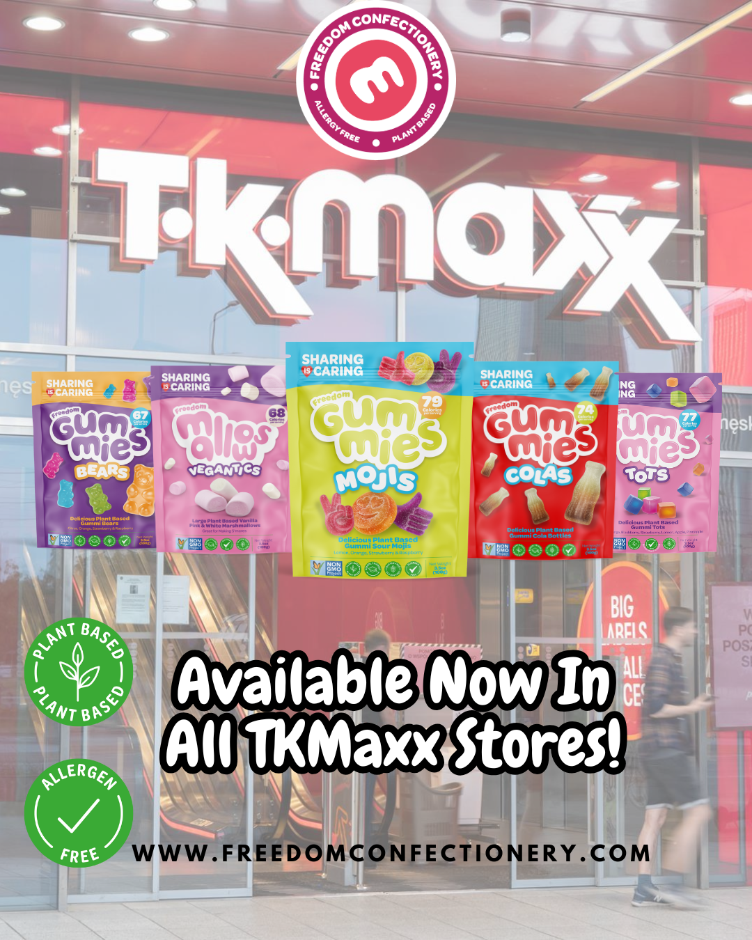 CARSON, CA, UNITED STATES, February 27, 2025 /EINPresswire.com/ -- In a significant expansion of its retail footprint, Freedom Confectionery LLC, known for its fully inclusive plant-based sweets, introduces its renowned products to TK Maxx stores across the UK. This partnership aligns with the brand's vision to make its allergy-free, vegan-certified marshmallows and gummies more accessible to a broader audience.Freedom Confectionery LLC is unique in its commitment to being free from the top 14 allergens and holding certifications that are halal, kosher, and suitable for those with PKU. This makes their offerings ideal for consumers with dietary restrictions, looking for guilt-free indulgence in sweets that cater to various lifestyle choices and beliefs.