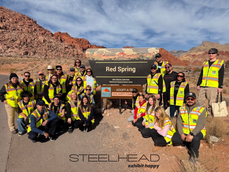 LAS VEGAS, NV, UNITED STATES, February 27, 2025 /EINPresswire.com/ -- Steelhead Productions, a premier event, exhibit, and marketing services provider, continues its commitment to environmental stewardship by once again partnering with Friends of Red Rock Canyon to host a trail cleanup at Calico Basin. This initiative brought together members of Steelhead's Sustainability Committee, Give Happy Committee, and the Give Happy Foundation—a non-profit in which Steelhead is a founding donor—to help preserve one of southern Nevada's most treasured landscapes. The group also gathered to celebrate the unveiling of the Give Happy Foundation sign through the 'Adopt-a-Trail' program, marking their dedication to long-term conservation efforts in the area
