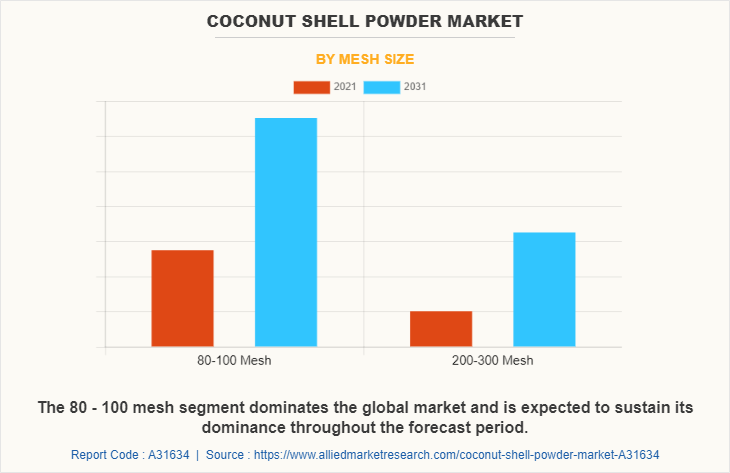 Various machines and equipment are used to manufacture coconut shell powder, including crushing and pulverizing equipment. Machines and equipment are designed and manufactured to provide maximum efficiency to end-user industries. These crushing and pulverizing machines are used to reduce the size of coconut shells and turmeric. A mesh size of 80-100 mesh is appropriate for thermo set moulding powder, whereas 230-240 mesh is required for synthetic resin glues. Furthermore, the activated carbon segment gained significant popularity in the coconut shell powder market. Government restrictions and rising need for activated carbon for a range of applications, including nuclear and mining, are important drivers of the coconut shell powder market's expansion worldwide. Furthermore, it is anticipated that the market would see development in specialized industrial process water applications. The usage of activated carbon in water treatment and mercury removal facilities is also driving up demand for the material, which in turn is spurring the market for coconut shell powder.