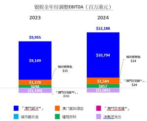 于2024年,澳门星际酒店录得净收益为53亿元,按年上升15%。经调整EBITDA为16亿元,按年上升24%。澳门星际酒店的博彩业务净赢率偏高,令经调整 EBITDA 增加约5,500万元。净赢率正常化后,2024年经调整EBITDA为15亿元,按年上升20%。