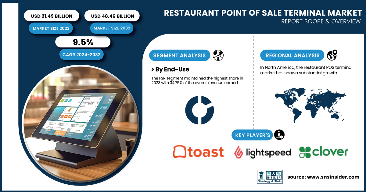 AUSTIN, TX, UNITED STATES, February 27, 2025 /EINPresswire.com/ -- The Restaurant Point of Sale Terminal Market Size was valued at USD 21.49 Billion in 2023 and is expected to reach USD 48.46 Billion by 2032, growing at a CAGR of 9.5% from 2024 to 2032. This growth includes advancements in software integration, increasing demand for contactless payments, and improved operational efficiency. Key vendors focus on feature-rich solutions, performance benchmarks highlight system reliability, and software integration capabilities drive seamless connectivity. Usage statistics show widespread adoption, reinforcing the market's expansion trajectory.Get Sample Copy of Report: https://www.snsinsider.com/sample-request/4821