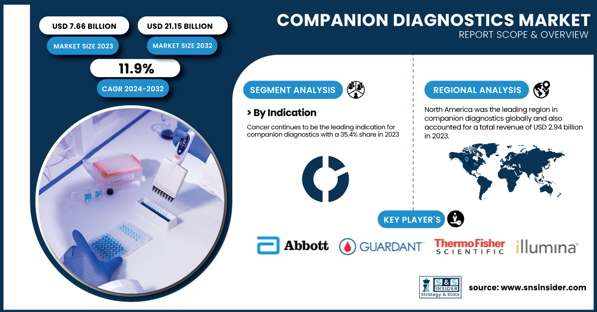 AUSTIN, TX, UNITED STATES, February 27, 2025 /EINPresswire.com/ -- According to Research by SNS Insider, the global Companion Diagnostics Market was valued at USD 7.66 billion in 2023 and is projected to reach USD 21.15 billion by 2032, growing at a CAGR of 11.9% during the forecast period of 2024-2032.Key Trends Impacting the Companion Diagnostics Market