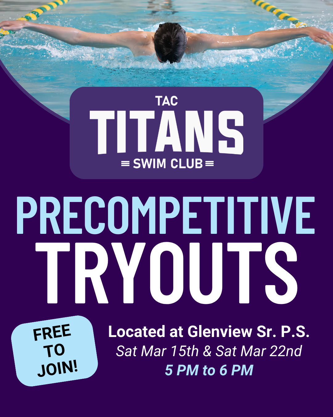 TORONTO, CANADA, February 28, 2025 /EINPresswire.com/ -- TAC Aquatics is excited to announce free tryouts for the TAC Titans Pre-Competitive Swim Team, taking place on March 15th and March 22nd. These tryouts provide young swimmers with the opportunity to take the next step in their swimming journey and join a program designed to build confidence, endurance, and competitive skills.