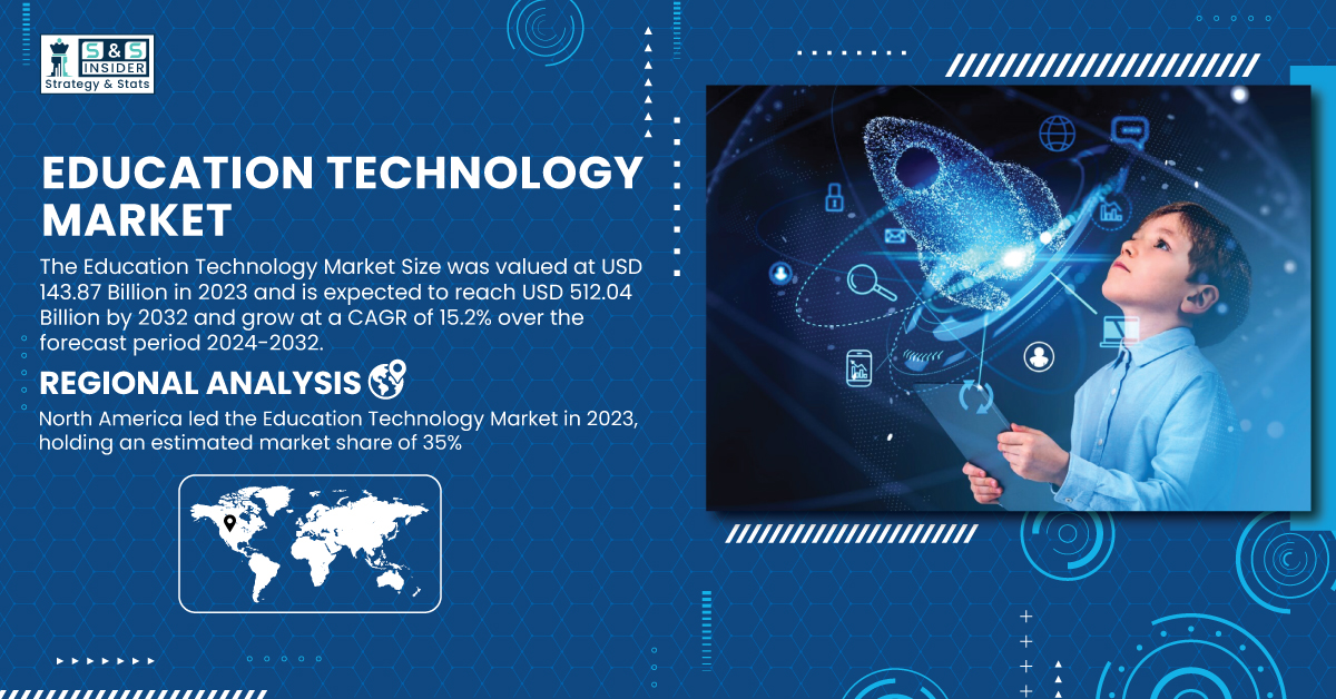 AUSTIN, TX, UNITED STATES, February 28, 2025 /EINPresswire.com/ -- The SNS Insider report indicates that the Education Technology Market size was valued at USD 143.87 billion in 2023 and is estimated to reach USD 512.04 billion by 2032, growing at a CAGR of 15.2% during the forecast period from 2024 to 2032. The increasing integration of artificial intelligence and machine learning in educational platforms is revolutionizing personalized learning experiences, driving market growth.Get Sample Copy of Report: https://www.snsinsider.com/sample-request/5798