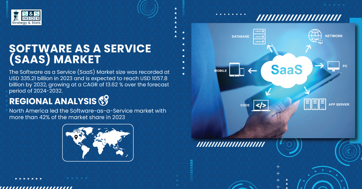 AUSTIN, TX, UNITED STATES, March 3, 2025 /EINPresswire.com/ -- The SNS Insider report indicates that the Software as a Service (SaaS) Market size was valued at USD 335.21 billion in 2023 and is estimated to reach USD 1057.8 billion by 2032, growing at a CAGR of 13.62% during the forecast period of 2024-2032. The rapid shift towards cloud computing, AI-driven automation, and growing enterprise digitization are driving the exponential growth of the SaaS market. Businesses are increasingly leveraging SaaS solutions to enhance operational efficiency and scalability.Get Sample Copy of Report: https://www.snsinsider.com/sample-request/2758