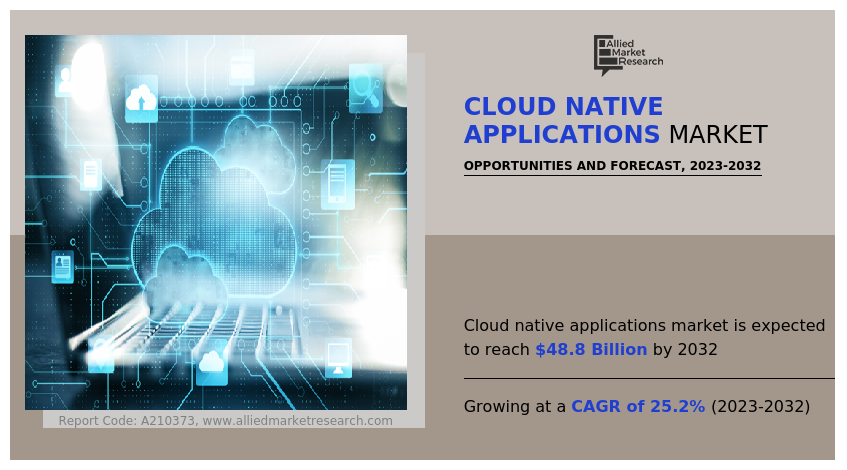 WILMINGTON, NEW CASTLE, DE, UNITED STATES, March 4, 2025 /EINPresswire.com/ -- The global 𝐂𝐥𝐨𝐮𝐝 𝐍𝐚𝐭𝐢𝐯𝐞 𝐀𝐩𝐩𝐥𝐢𝐜𝐚𝐭𝐢𝐨𝐧𝐬 𝐌𝐚𝐫𝐤𝐞𝐭 was valued at $5.3 billion in 2022, and is projected to reach $48.8 billion by 2032, growing at a CAGR of 25.2% from 2023 to 2032. By component, the platform segment held the major share in 2022, garnering more than two-thirds of the global cloud native applications market revenue, owing to the increasing demand for edge computing, which involves processing data closer to the source rather than sending it to a centralized data center. The service segment would also showcase the fastest CAGR of 27.5% during the forecast period, owing to quick improvements in technology, including serverless computing, microservices, and containerization.𝐃𝐨𝐰𝐧𝐥𝐨𝐚𝐝 𝐒𝐚𝐦𝐩𝐥𝐞 𝐑𝐞𝐩𝐨𝐫𝐭 (𝐆𝐞𝐭 𝐅𝐮𝐥𝐥 𝐈𝐧𝐬𝐢𝐠𝐡𝐭𝐬 𝐢𝐧 𝐏𝐃𝐅 - 324 𝐏𝐚𝐠𝐞𝐬) 𝐚𝐭: https://www.alliedmarketresearch.com/request-sample/A210373