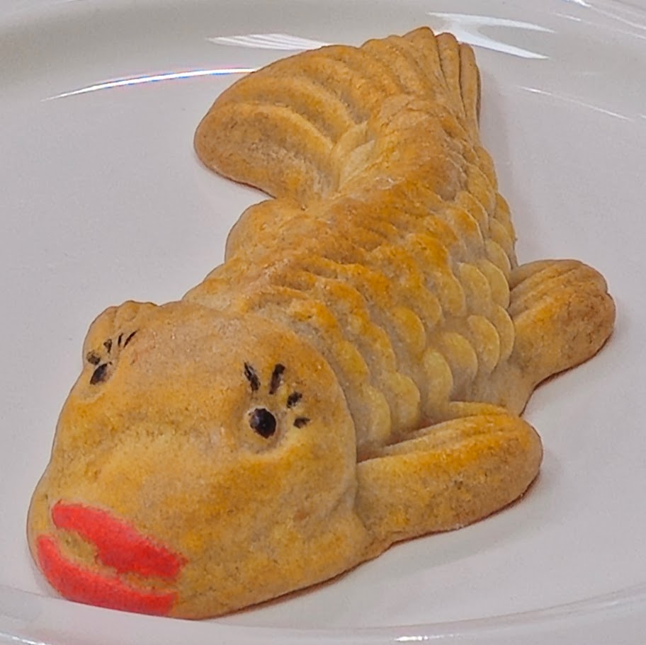 This Prosperity Fish Mooncake is filled with Pineapple -- the fruit symbolizes hospitaily and the koi fish-shape represents perseverance, good-fortune, strength and ambition. A classic flavor with a design twist from the Wu sisters to bring a smile.