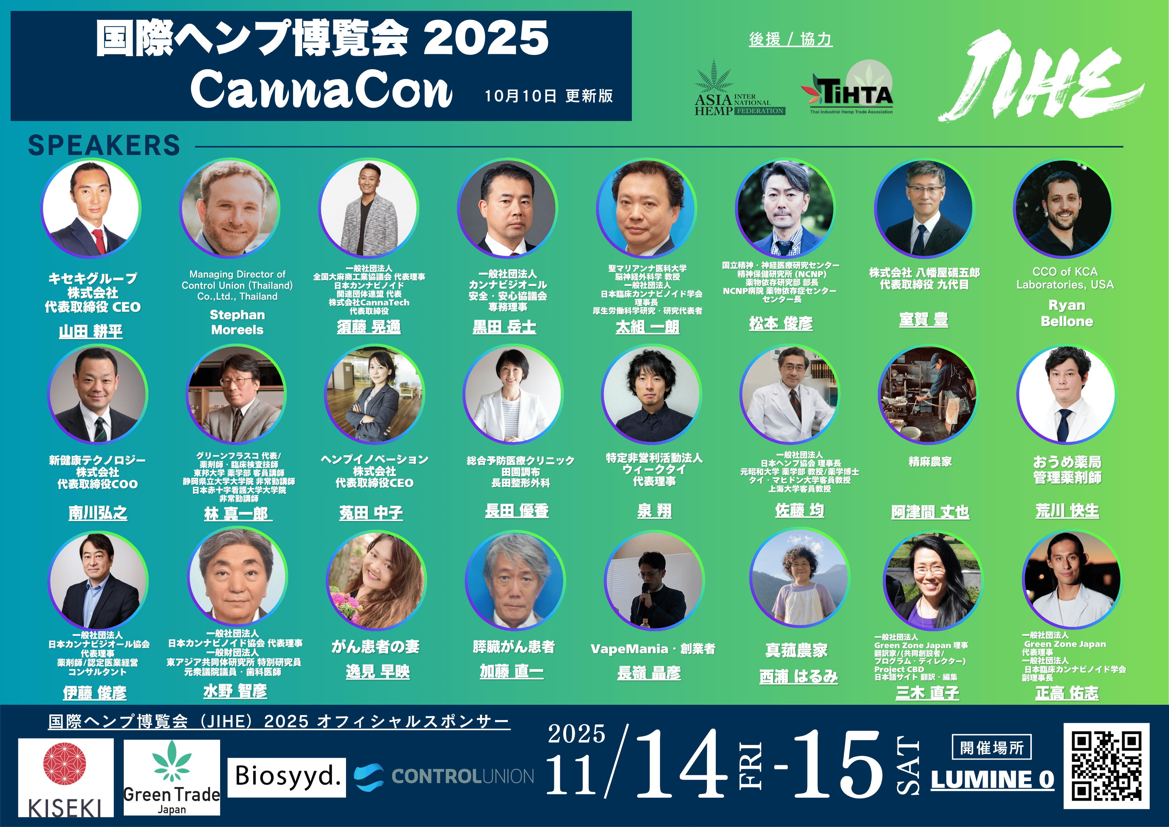 SHIBUYA-KU, TOKYO, JAPAN, October 24, 2025 /EINPresswire.com/ -- Asabis Inc. (Headquarters: Shibuya, Tokyo / President & CEO: Ryota Nakazawa) and GREEN ZONE JAPAN (Representative Director: Yuji Masataka) have announced that the Japan International Hemp Expo 2025 (JIHE 2025) will be held at LUMINE 0 at Shinjuku station from November 14th to 15th, 2025. This is the largest* international hemp exhibition and conference in Japan.