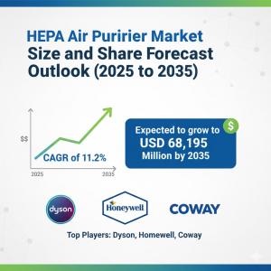 NEWARK, DE, UNITED STATES, November 19, 2025 /EINPresswire.com/ -- The global HEPA air purifier market is poised for significant expansion, driven by rising pollution levels, increased health awareness, and rapid adoption of smart home technologies. Leading brands such as Dyson, Honeywell, Philips, Blueair, and Coway continue to shape the competitive landscape with advanced filtration technologies and consumer-centric innovations. According to the latest forecast, the market is set to reach USD 68,195 million by 2035, growing at a CAGR of 11.2% from 2025 to 2035.