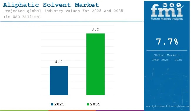 The aliphatic solvent market is forecast to grow from USD 4.2 billion in 2025 to USD 8.9 billion by 2035, advancing at a CAGR of 7.7% over the period.