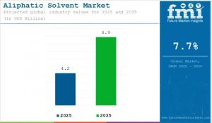 NEWARK, DE, UNITED STATES, November 24, 2025 /EINPresswire.com/ -- The global aliphatic solvent market is set for accelerated expansion, projected to grow from USD 4.2 billion in 2025 to USD 8.9 billion by 2035, at a robust CAGR of 7.7%, according to newly released industry forecasts. Growth is being propelled by mounting demand from paints & coatings, adhesives, automotive refinishing, construction, and industrial cleaning sectors across key regions—particularly Asia-Pacific, Europe, the United States, and Saudi Arabia.