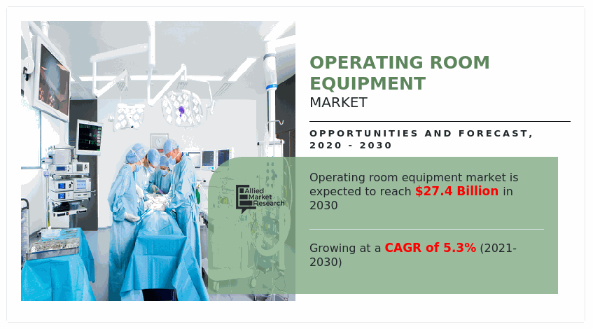 PORTLAND, OR, UNITED STATES, December 1, 2025 /EINPresswire.com/ -- Allied Market Research published a report, titled, "Operating Room Equipment Market By Type (Anesthesia Machines, Electrosurgical Devices, Multi-parameter Patient Monitors, Surgical Imaging Devices, Operating Tables, Operating Room Lights, Surgical Navigation Systems), By End User (Hospitals, Outpatient Facilities, Ambulatory Surgical Centers (ASCs)): Global Opportunity Analysis and Industry Forecast, 2020-2030." According to the report, the global operating room equipment industry generated USD 16.4 billion in 2020 and is expected to reach USD 27.4 billion by 2030, witnessing a CAGR of 5.3% from 2021 to 2030.The report provides a detailed analysis of the top investment pockets, top winning strategies, drivers & opportunities, market size & estimations, competitive landscape, and evolving market trends. The market study is a helpful source of information for the frontrunners, new entrants, investors, and shareholders in crafting strategies for the future and heightening their position in the market.